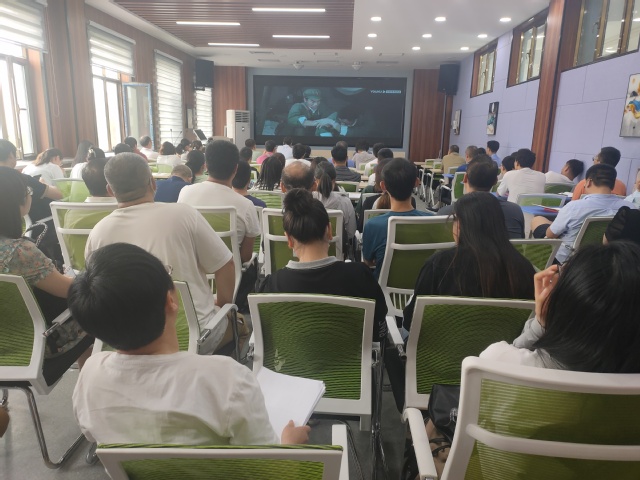 影片结束,党委书记任建总结发言,表示在党的102岁生日到来之际,希望能借此影片传承革命精神,引导全体党员感悟初心、担当使命,强化党员身份意识、责任意识