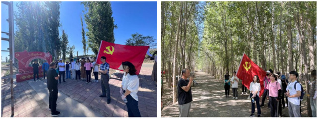 全体党员同志首先参观了152团4连葡萄基地,在连长阿龙的细心讲解下,了解了酒酿葡萄的生长过程、152团葡萄的优势特点、以及葡萄地旅游资源开发情况。随后,同志们来到神仙湾,聆听“当代愚公”许登金的荒山造林的故事。全体党员纷纷表示,将以许登金同志为榜样,坚定理想信念、牢记初心使命,践行“愚公精神”,以坚持不懈、勇往直前的工作态度,为教育科研事业高质量发展贡献一份力量。