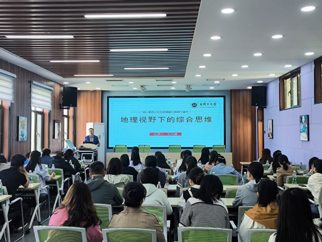 随后,旅游与地理系王月健教授开展了“地理视野下的综合思维”专题讲座,他提到“综合思维作为地理学科核心素养的培养目标,需要教师通过情境教学、问题教学、案例教学、户外调研等多种方式,引导学生进行多元思考,帮助学生在做中学,在学中想,不断夯实学生的地理学科基础,养成良好的自主学习探究习惯,促进其地理综合思维的发展。”