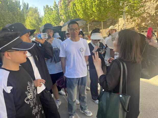 同学们在火焰山零海拔线拍照留念:40℃之旅,青春不惧高热