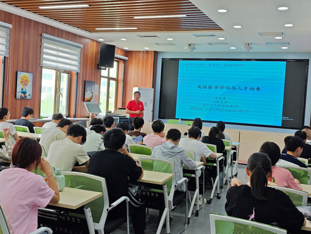 来自江南大学的唐旭清教授结合自己对数学学科的认识深入浅出地为学生分析了学习数学的意义,探讨了数学学科在人才培养中的核心地位,以及如何通过数学教育培养具备创新精神和实践能力的人才。他指出,数学作为自然科学的基础学科,不仅有助于培养学生的逻辑思维和抽象思维能力,还是一种解决现实问题的有效工具。数学人才在当今社会发挥着越来越重要的作用,他们不仅在科研领域取得显著成就,还在经济、金融、计算机等多个领域展现出强大的竞争力。