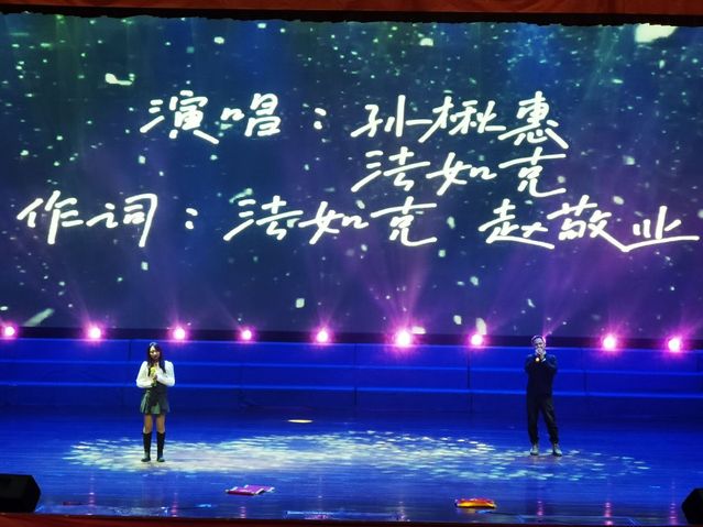 “普瑞的孩子啊,在学校的时光过得快乐吗......”来自新疆大学师生法克如,孙楸惠带来歌曲《是老师是学生》,如同涓涓细流般的歌声流淌进每个人的心田,他们用真挚的情感和优美的旋律触动着在场每一位师生的心弦。