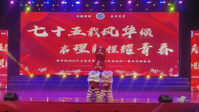 颁奖仪式结束,晚会在一片光影璀璨中拉开了帷幕,晚会的开场是由校团委带来的舞狮节目,表演者们身着五彩斑斓的狮服,动作矫健有力,伴随着激昂的鼓点,他们或腾或跃,或翻或滚,将中国传统文化中的舞狮艺术展现得淋漓尽致。全场掌声雷动,观众们的情绪被彻底点燃,为接下来的晚会节目营造了热烈浓厚的氛围。