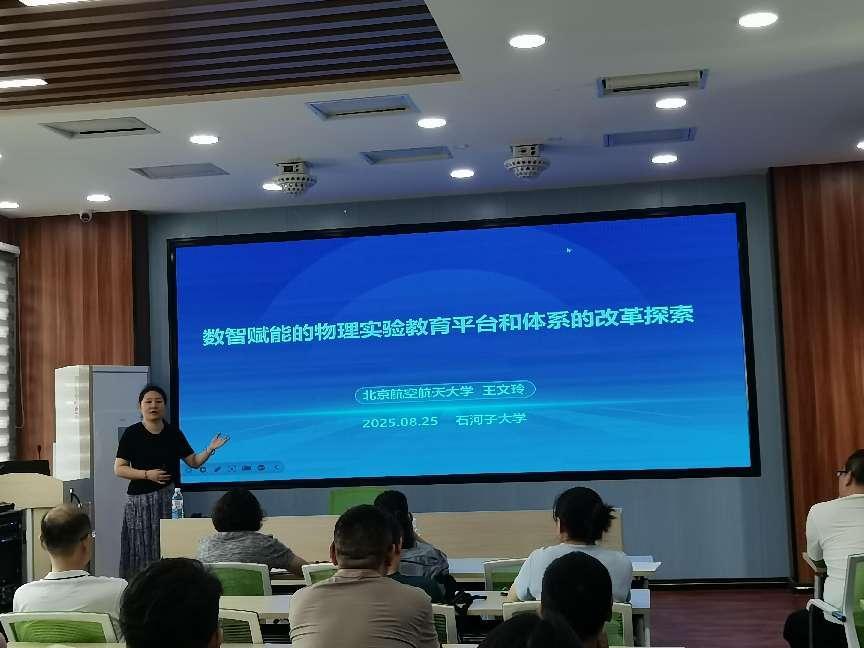 8月25日上午,我院成功举办了以“数智赋能的物理实验教育平台和体系的建设与探索”为主题的教研活动。活动特邀北京航空航天大学物理学院王文玲教授作专题报告。理学院副院长韩志全主持活动,物理系全体教师参加。