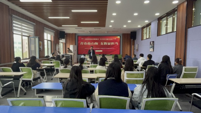 副院长徐丽萍介绍了和田地区及墨玉县的教育现状。她指出,南疆地区基础教育硬件设施逐步完善,但仍面临师资短缺等问题,尤其是具有较高专业素养和教学能力的教师。她鼓励同学们把握真正站上讲台、独立授课的宝贵机会,将南疆实践视为职业生涯的“练兵场”,并分享了我院本科生于南疆支教期间获得的广泛好评,勉励研究生同学以更高站位、更强担当为南疆孩子点亮理想之灯、照亮前行之路。
