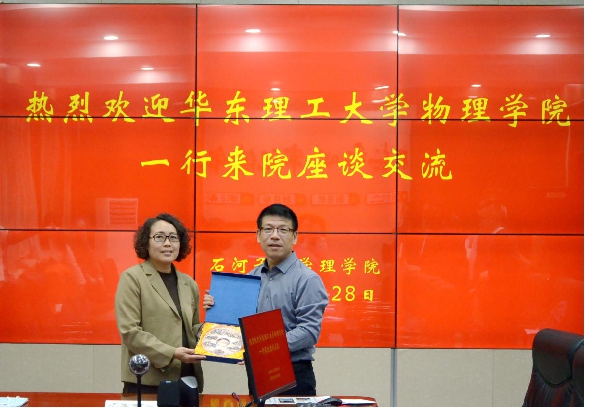 在自由交流阶段,双方围绕合作细节进行了富有建设性的讨论。李剑副校长进一步提出了五点合作建议:一是协同整合兵团政策与科研资源;二是推动研究生双向培养与导师互聘;三是促进优质课程资源共享与教学互鉴;四是结合兵团红色资源开展联合党建活动;五是共同举办高水平学术会议,助力我校物理学科博士点申报工作。双方一致表示,将尽快推动合作意向落地,建立常态化交流机制,共同服务国家战略与区域发展需求。交流期间,华东理工大学物理学院还向我院赠送纪念品,表达友好情谊与合作愿景。